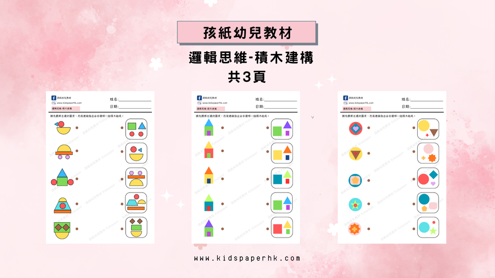 K2 K3 邏輯思維-積木建構 邏輯思維遊戲 Logical Thinking Worksheets • Mar 3, 2026 這份PDF專為幼兒設計的邏輯思維練習冊,主題聚焦「邏輯思維-積木建構」,共計3頁,採用全彩可愛幾何積木圖案+連線配對形式,屬初階篇,適合香港家長或幼稚園教師用以訓練兒童的空間想像力、圖形辨識能力、組合思維以及視覺-邏輯推理基礎。適合幼稚園K1–K2階段,或剛開始接觸空間與組合遊戲的孩子。專注於「觀察成品圖形→找出對應積木組合」的配對練習,幫助兒童從平面觀察過渡到三維組合理解,為後續積木實作、幾何認知、圖形分解與拼圖遊戲打基礎。 標籤 邏輯思維遊戲 Logical Thinking Worksheets K2(4-5歲) K3(5-6歲) 訂閱我們的新內容 將最新的文章發送到你的收件箱. 你的 Email 地址 訂閱 Now check your inbox and click the link to confirm your subscription. Please enter a valid email address Oops! There was an error sending the email, please try later. Maggie Lui 向你推薦 邏輯思維遊戲 Logical Thinking Worksheets | K2(4-5歲) | K3(5-6歲) K2 K3邏輯思維-位置 a month ago • 閱讀預計需要2分鐘 邏輯思維遊戲 Logical Thinking Worksheets | K2(4-5歲) | K3(5-6歲) K2 K3邏輯思維-次序 a month ago • 閱讀預計需要2分鐘 數學遊戲 Mathematics Worksheets | K3(5-6歲) K3 數學遊戲-減法 a month ago • 閱讀預計需要2分鐘